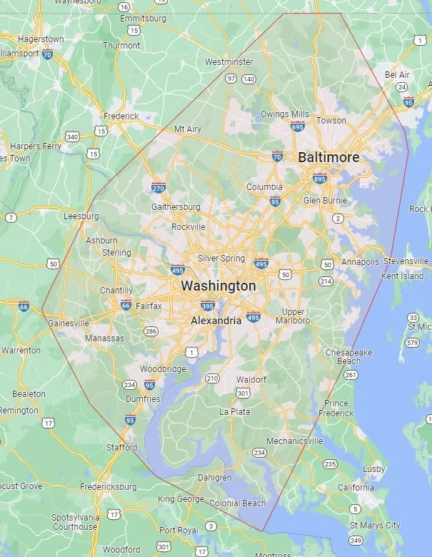 We buy houses for cash in all DMV wards, as well as all neighboring cities and counties. So don’t worry if you don’t own a house in DMV! We can make you a cash offer on properties all over the region, just look at the outlined area to the right. 👉 *We can even go outside this area in many cases if you’re looking to sell in other areas!*