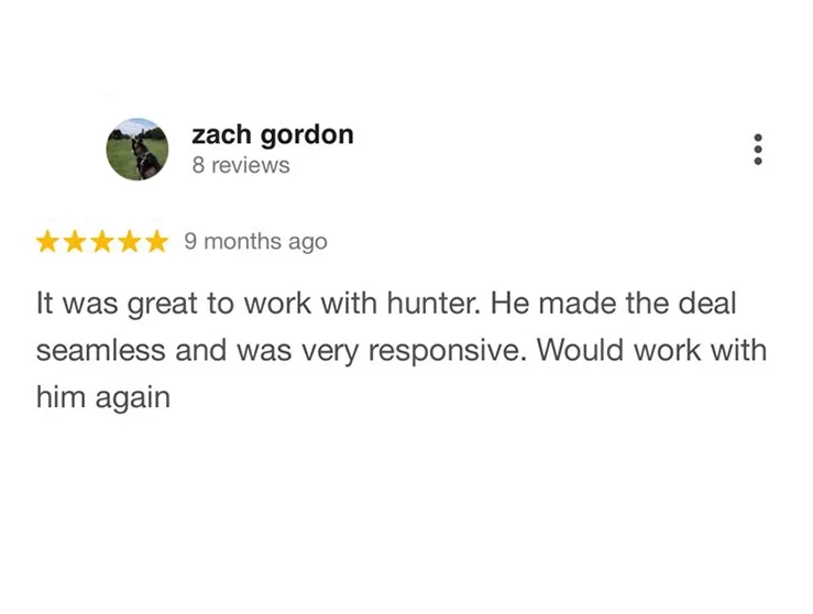 “I wanted to give a shout out to Hunter and his team. I recently sold these guys a house that I needed to move quickly. I’m not local to VA and purchased it to rehab and realized that I needed someone local that could take over the project. They were very professional and closed on time. Thanks Hunter!”