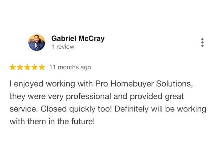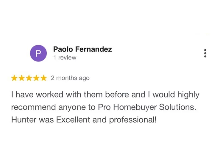 “Pro Home Buyer Solutions is a trusted home-buying company that I have had the pleasure to transact with over the past 3 years. They have a truly fantastic staff that is customer first oriented. These guys get it and you can absolutely count on them to do what they say.”